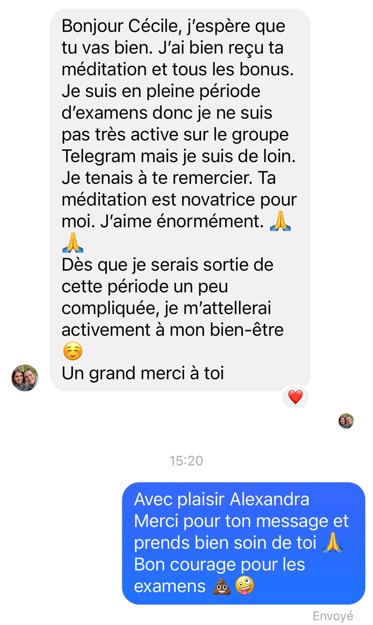 Tu auras entre les oreilles une méditation guidée sur mesure comme celles que j'utilisent sur moi depuis des années.